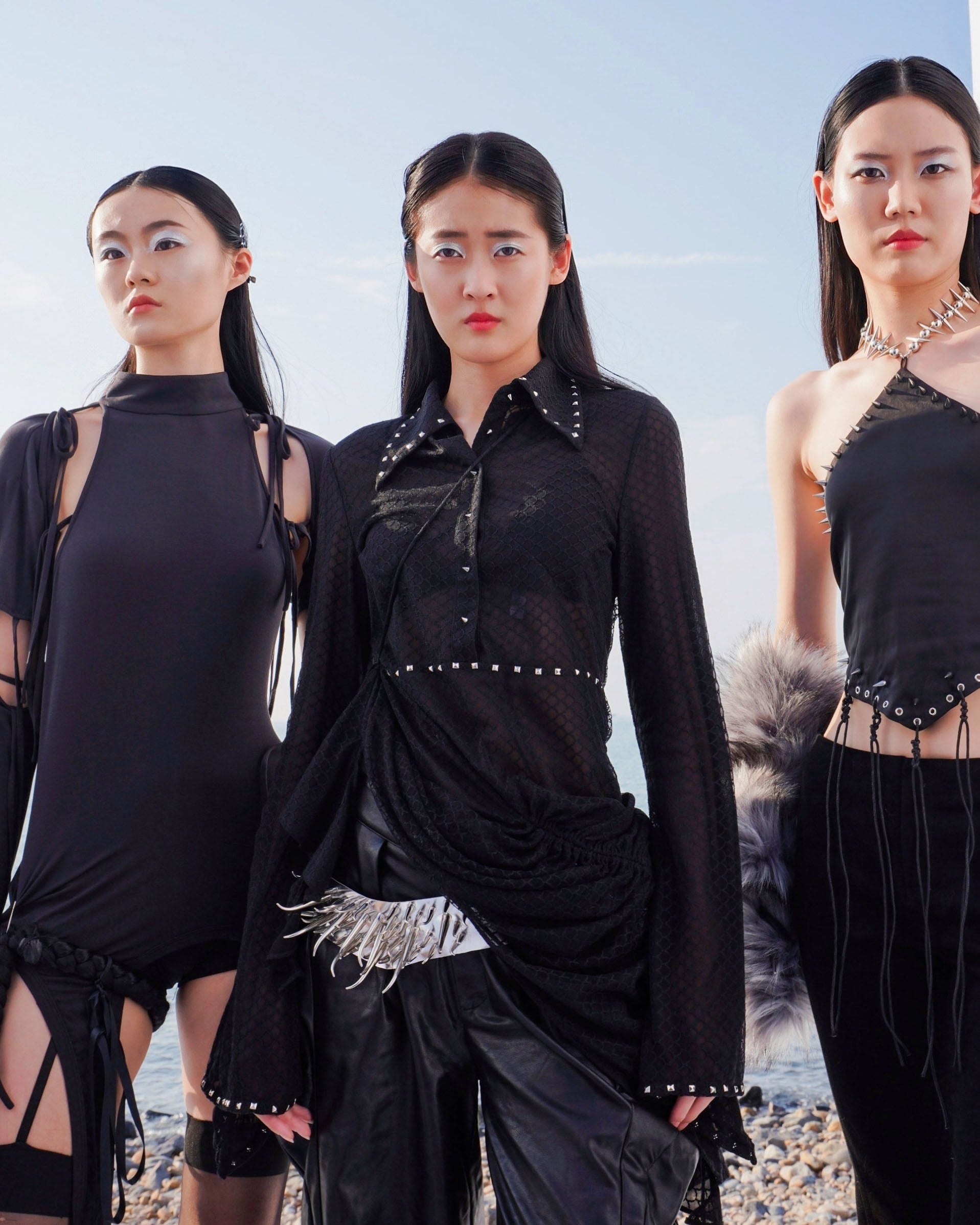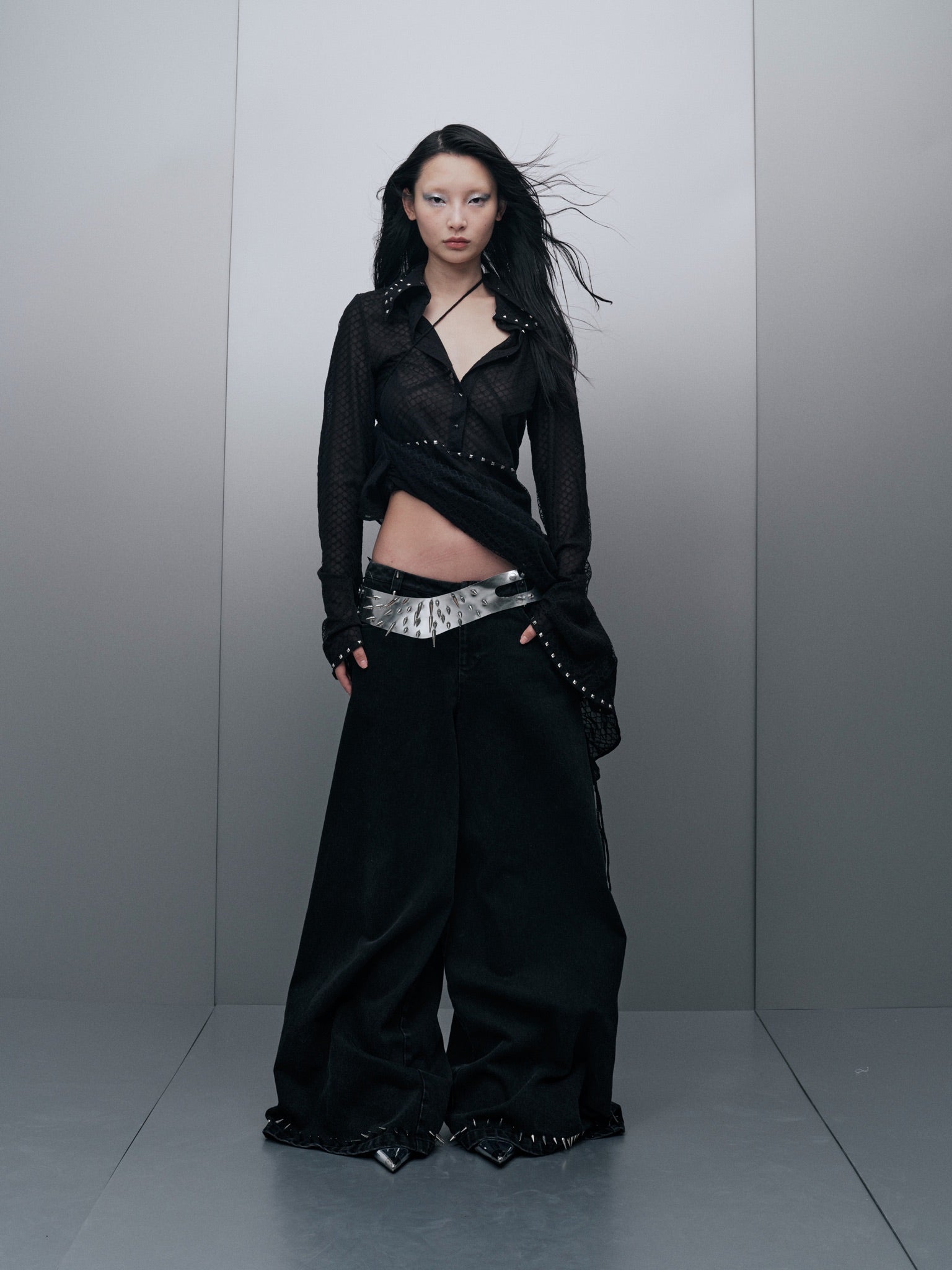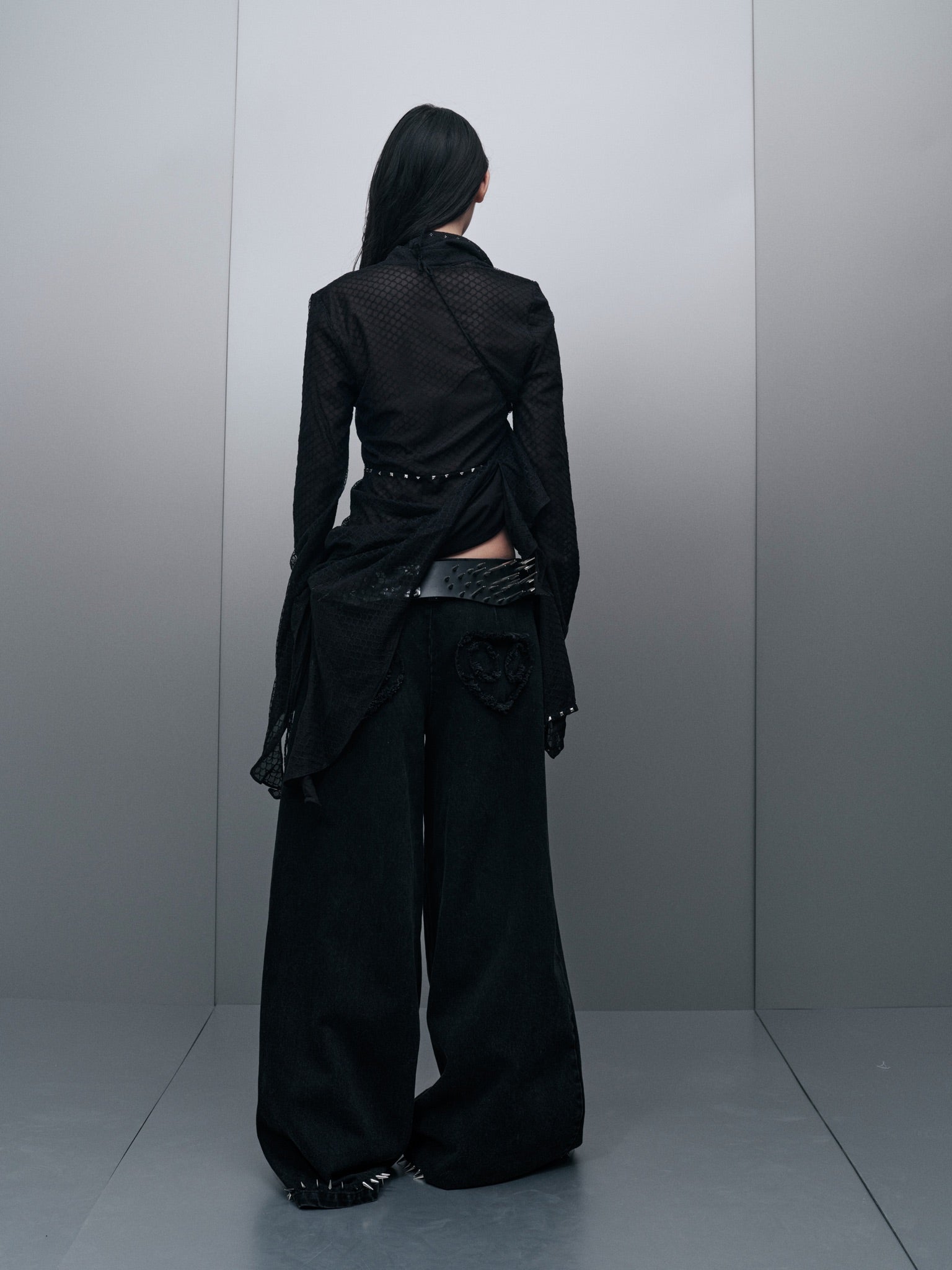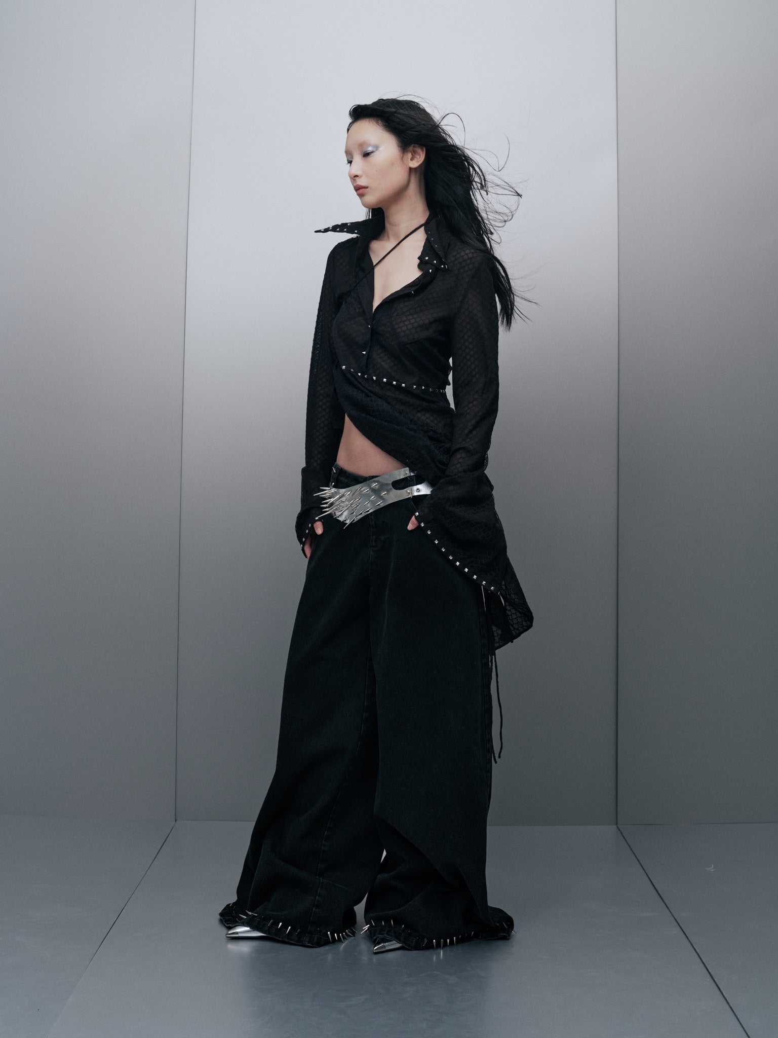 Pointed collar with metal stud embellishments